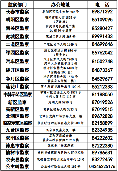 长春地区劳动保障监察部门地址及联系电话