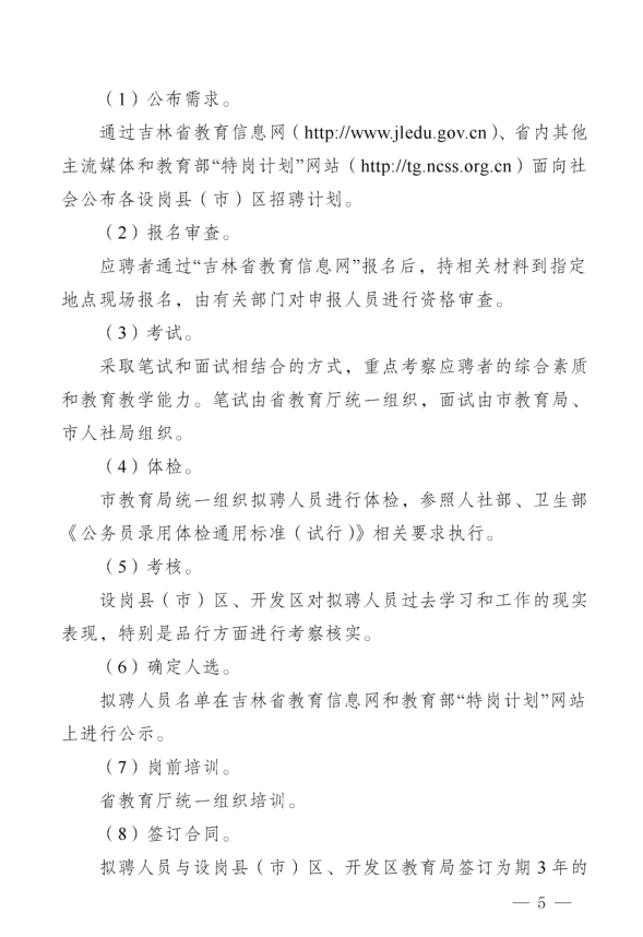 通过吉林省教育信息网(http://www.jledu.gov.cn)、省内其他主流媒体和教育部“特岗计划”网站(http://tg.ncss.org.cn)面向社会公布各设岗县(市)区招聘计划。