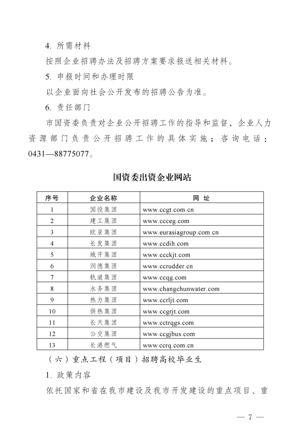 市国资委负责对企业公开招聘工作的指导和监督,企业人力资源部门负责公开招聘工作的具体实施;咨询电话:0431—88775077。