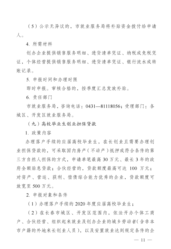 (3)在长春市城区、开发区首次创业或灵活就业。
