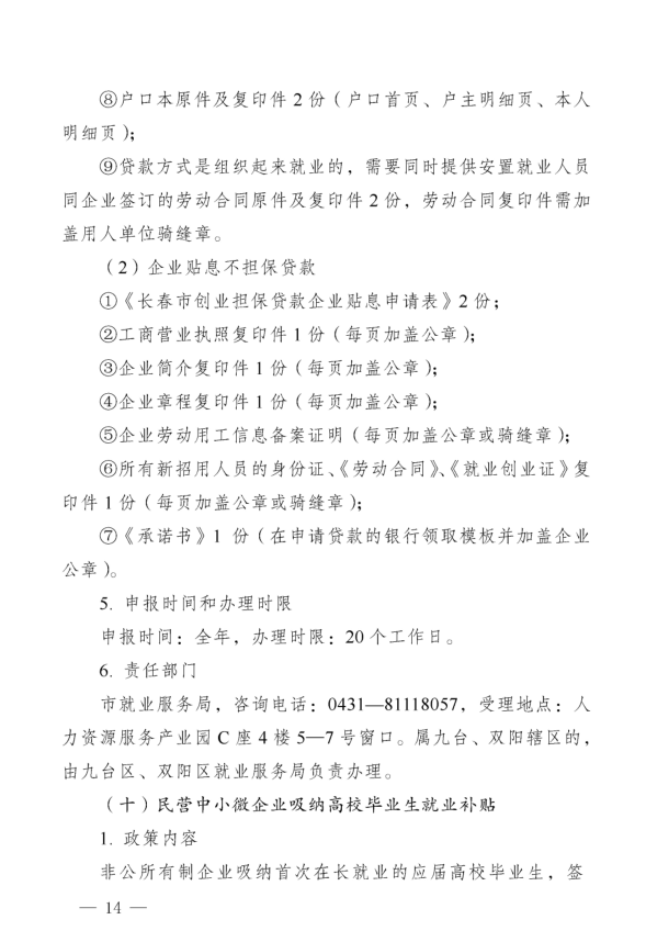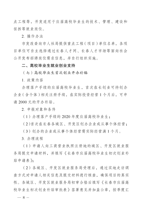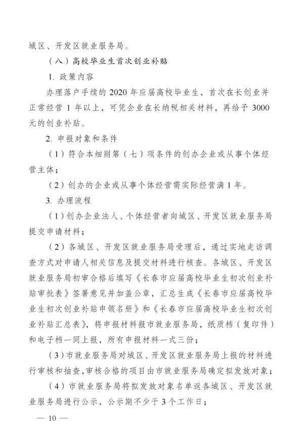 (2)首次在长春各城区、开发区创办企业或从事个体经营;