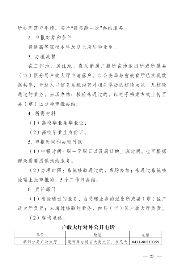 普通高等院校本科及以上应届毕业生,凡自愿落户长春的,可持身份证、毕业证到在长的居住地、工作地或档案保管地派出所办理落户手续,实行“最多跑一次”办结服务。