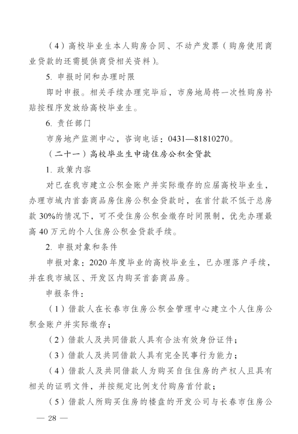 申报对象:2020年度毕业的高校毕业生,已办理落户手续,并在我市城区、开发区内购买首套商品房。