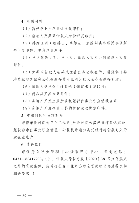 市住房公积金管理中心贷款经办中心,咨询电话:0431—88417233。(注:借款人除长办发〔2020〕38号文件规定之外的贷款条件,应符合长春市住房公积金贷款管理办法等文件相关要求。)