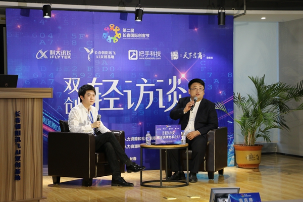 长春朝阳讯飞AI双创基地分会场举办主题为“双创轻访谈——推开法律变革之门”直播活动,直播通过访谈年轻创客或企业高层,深入创业者的内心,了解他们的创业故事,分享相关行业前沿技术,激发年轻人创新创业的热情,培养创业思维,让更多有创业意向的年轻人加入到创业热潮中。本期直播中,长春市把手科技有限公司创始人兼总经理刘思铭围绕如何选择创业项目,如何度过创业危机,怎样做一个优秀的企业管理者等话题与观众互动沟通,不仅分享了创业路上的心酸与快乐,也带大家了解了时下最热门的人工智能行业赋能司法行业的应用。活动采用线上线下同时进行的方式, 7000余观众参与直播,千余条留言互动。
