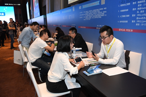 图为大会吸引大批求职者来到现场应聘