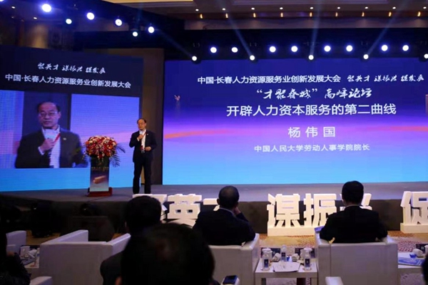 中国人民大学劳动人事学院院长杨伟国就《开辟人力资本服务的第二曲线》进行了主题分享。杨伟国认为,基于工业经济范式的人力资源服务已经发展到相对成熟的阶段,正在加速接近第一曲线的巅峰阶段,然而第四次工业革命所引发的经济范式正在转换,管理范式正在转换,人力资本服务也正是启动第二曲线的最佳时机。人力资本服务第二曲线可以着手于探险型、开拓型与专业型三大选择。