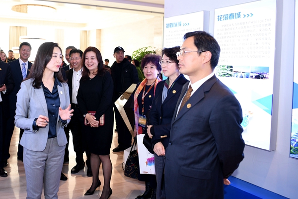 图为与会领导和嘉宾参观成果展