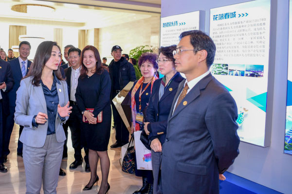 图为领导和嘉宾参观产业园成果展
