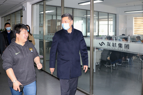 为助力企业战疫情、渡难关,深入开展“万人助万企”活动,4月23日,长春市人社局张咏刚副局长带领助企工作队深入友联科技集团开展走访服务活动,先后参观了企业智能AI产品研发工作室及行业客服中心,并与企业负责人开展深入的座谈交流活动,工伤保险处、人力资源市场处负责同志陪同走访。