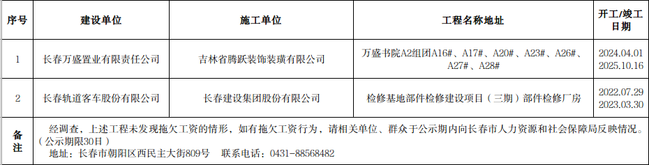 2025年度长春市人力资源和社会保障局农民工工资保证金返还审批第三十三批公示